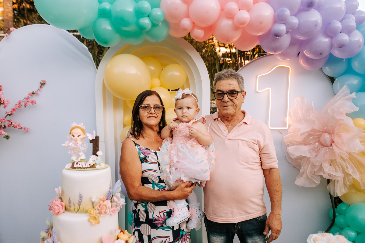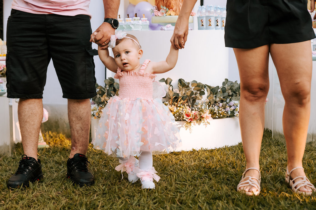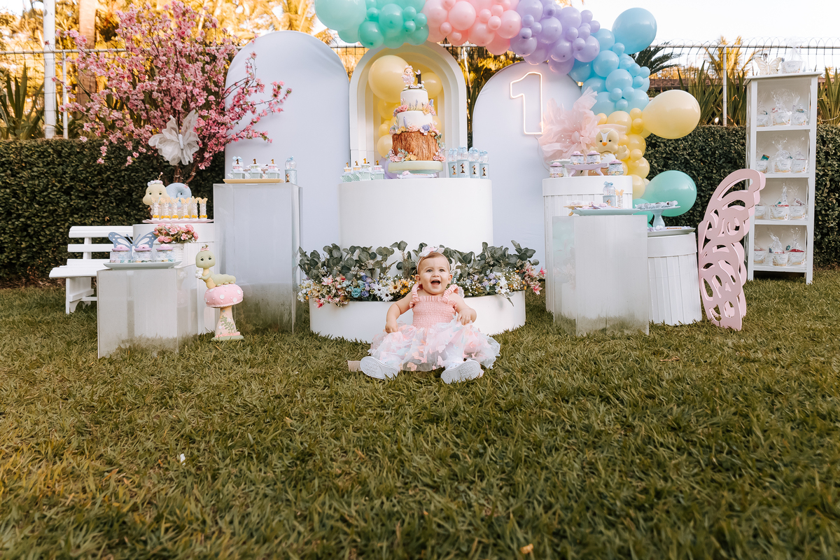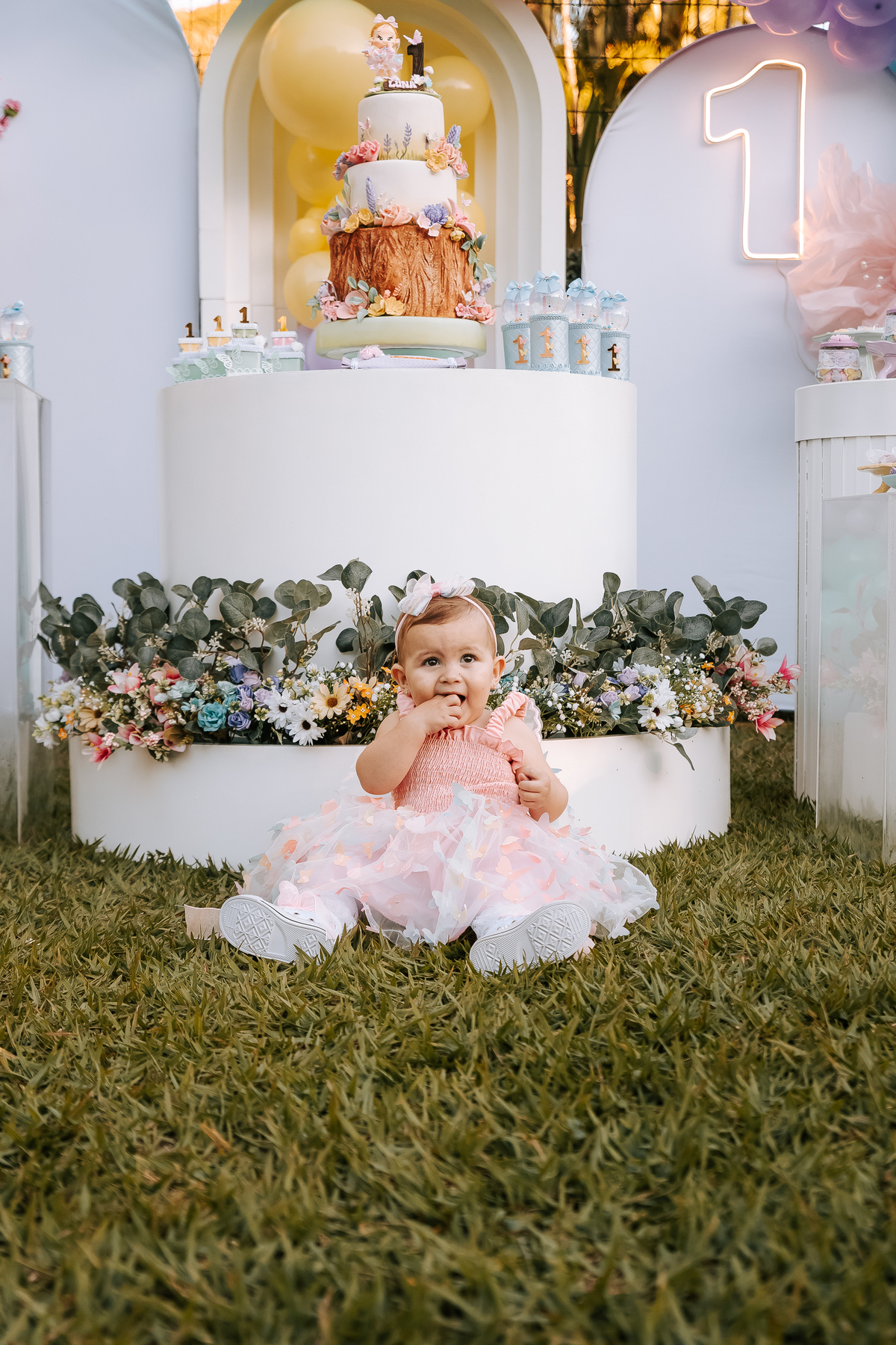 Um aniversário intimista, no gramado do sítio da família, só com as pessoas mais importantes e indispensáveis para festejar a vida e o encanto de menina que é a Luna. O tema escolhido foi jardim encantado e ficou a coisa mais linda do mundo, principalmente por contar com a presença ilustre da fadinha Luna e seu look composto por um vestido de borboletas e all star personalizado!