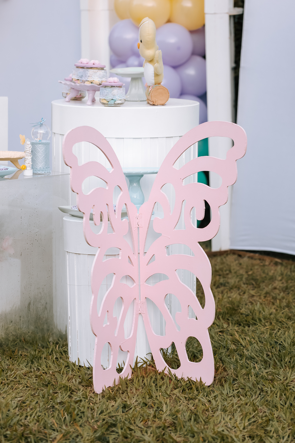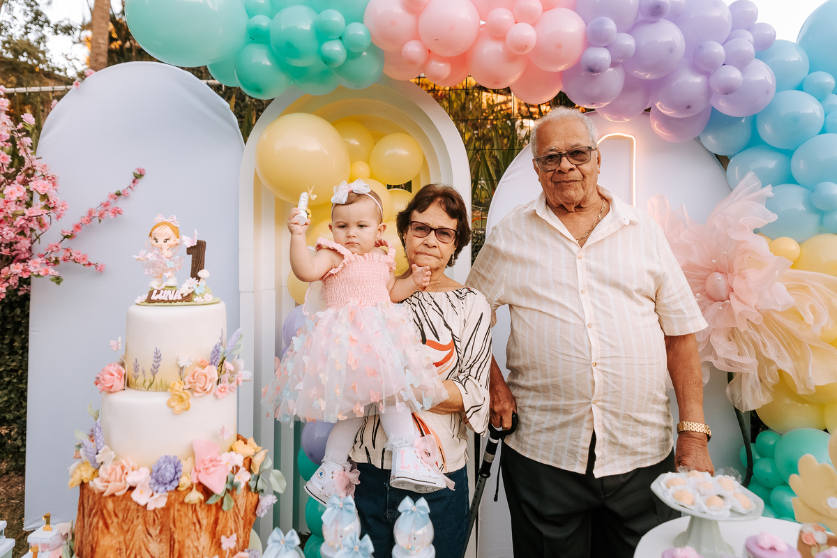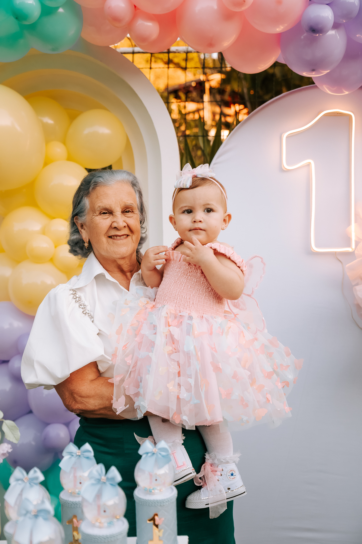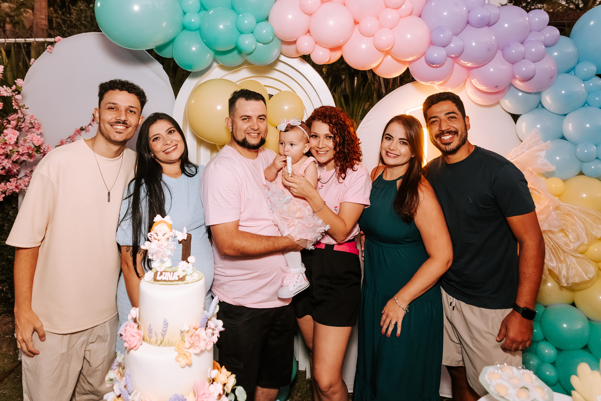 Um aniversário intimista, no gramado do sítio da família, só com as pessoas mais importantes e indispensáveis para festejar a vida e o encanto de menina que é a Luna. O tema escolhido foi jardim encantado e ficou a coisa mais linda do mundo, principalmente por contar com a presença ilustre da fadinha Luna e seu look composto por um vestido de borboletas e all star personalizado!